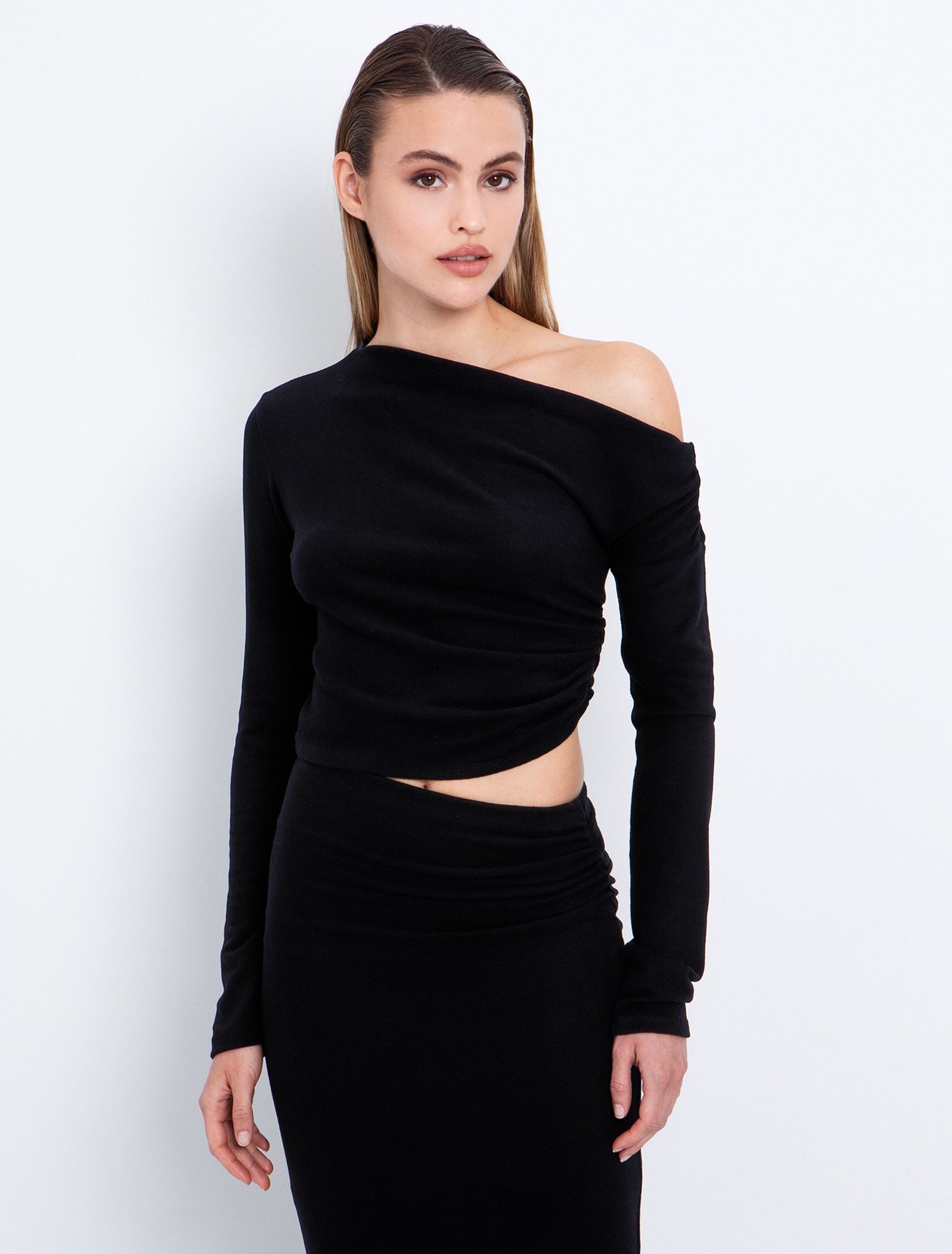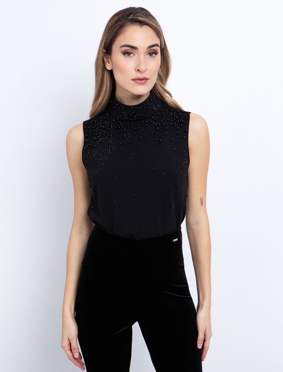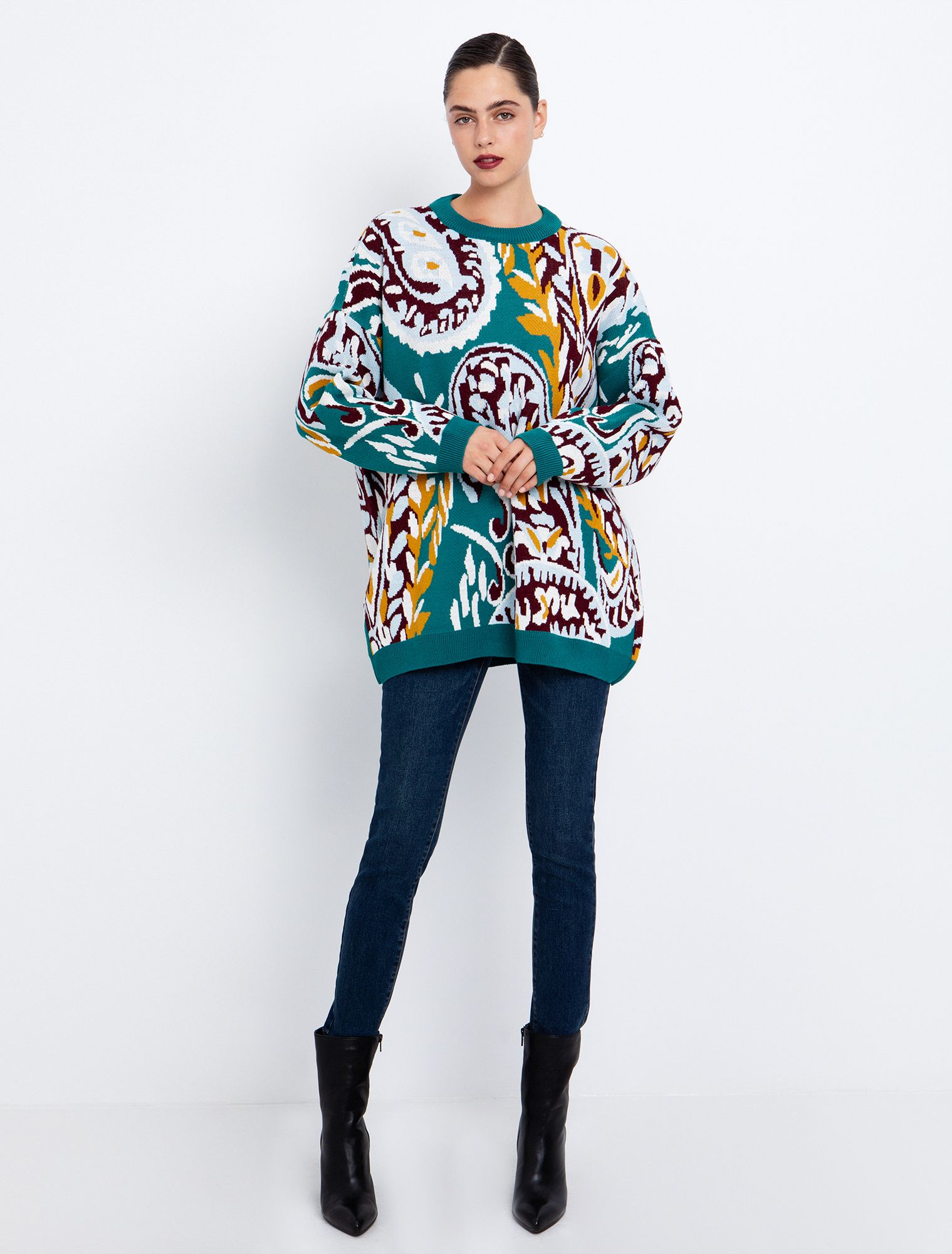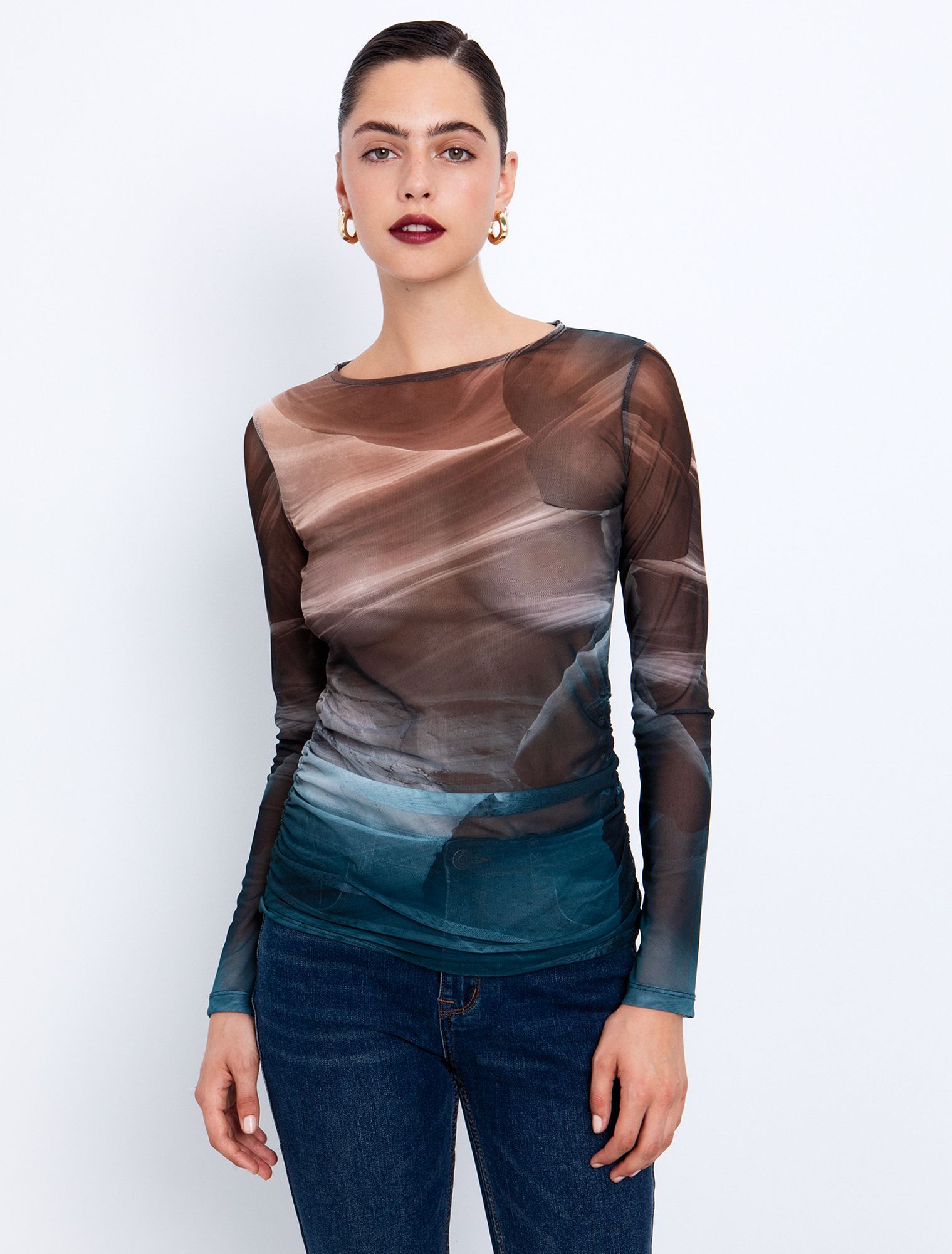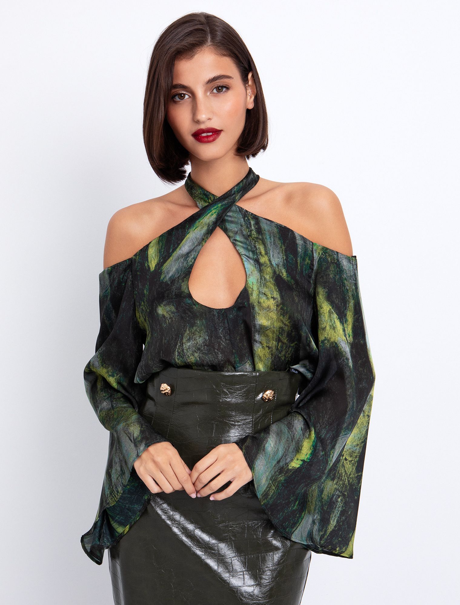 Έμπριμέ μπλούζα με χιαστί λαιμό