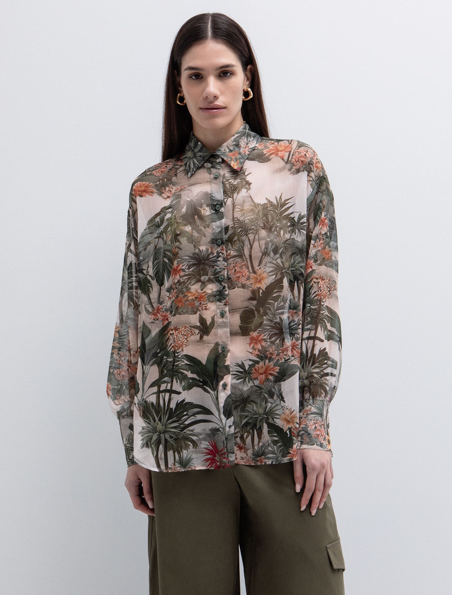 Μακρύ πουκάμισο tropical τύπωμα