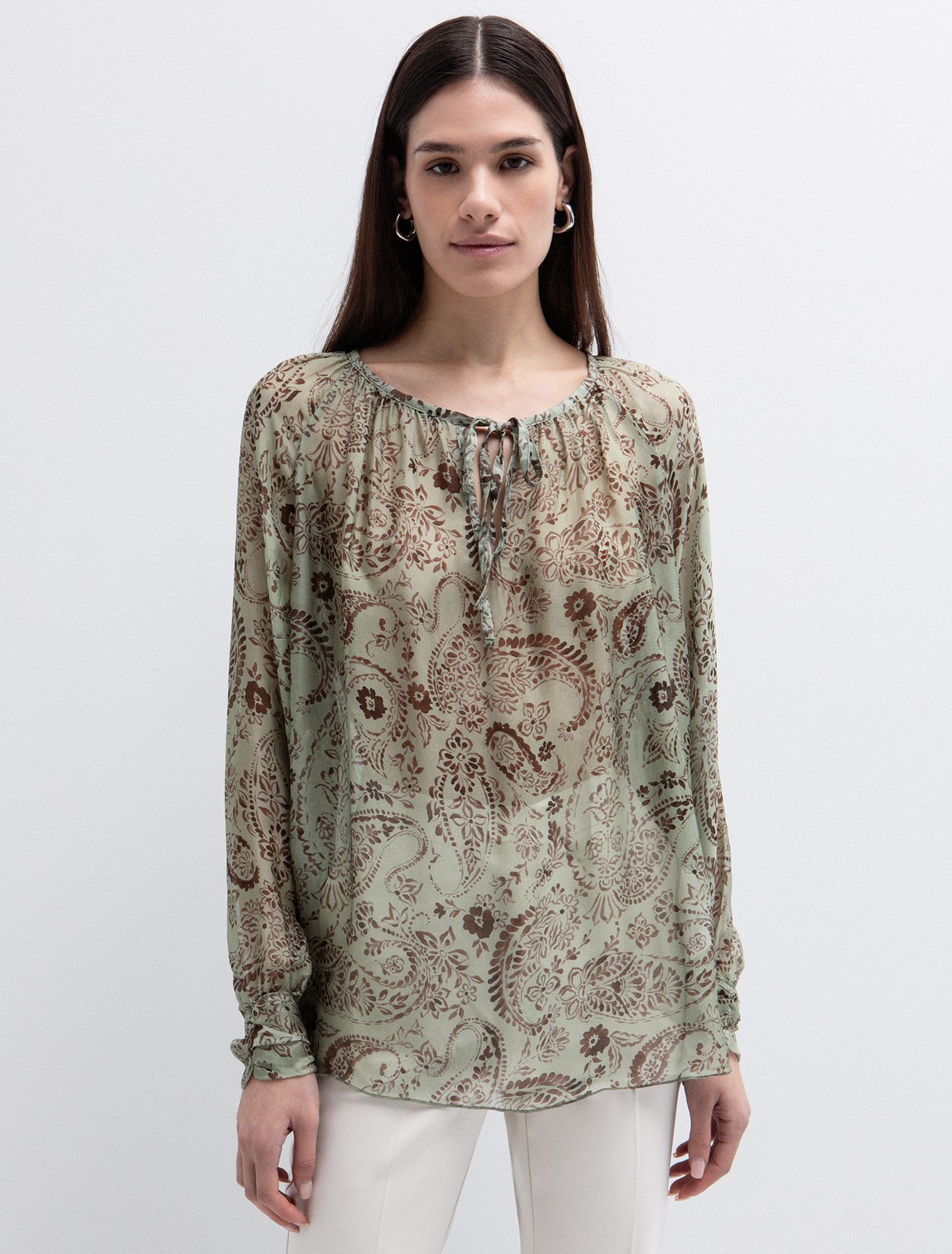 Εμπριμέ μπλούζα με κορδόνια