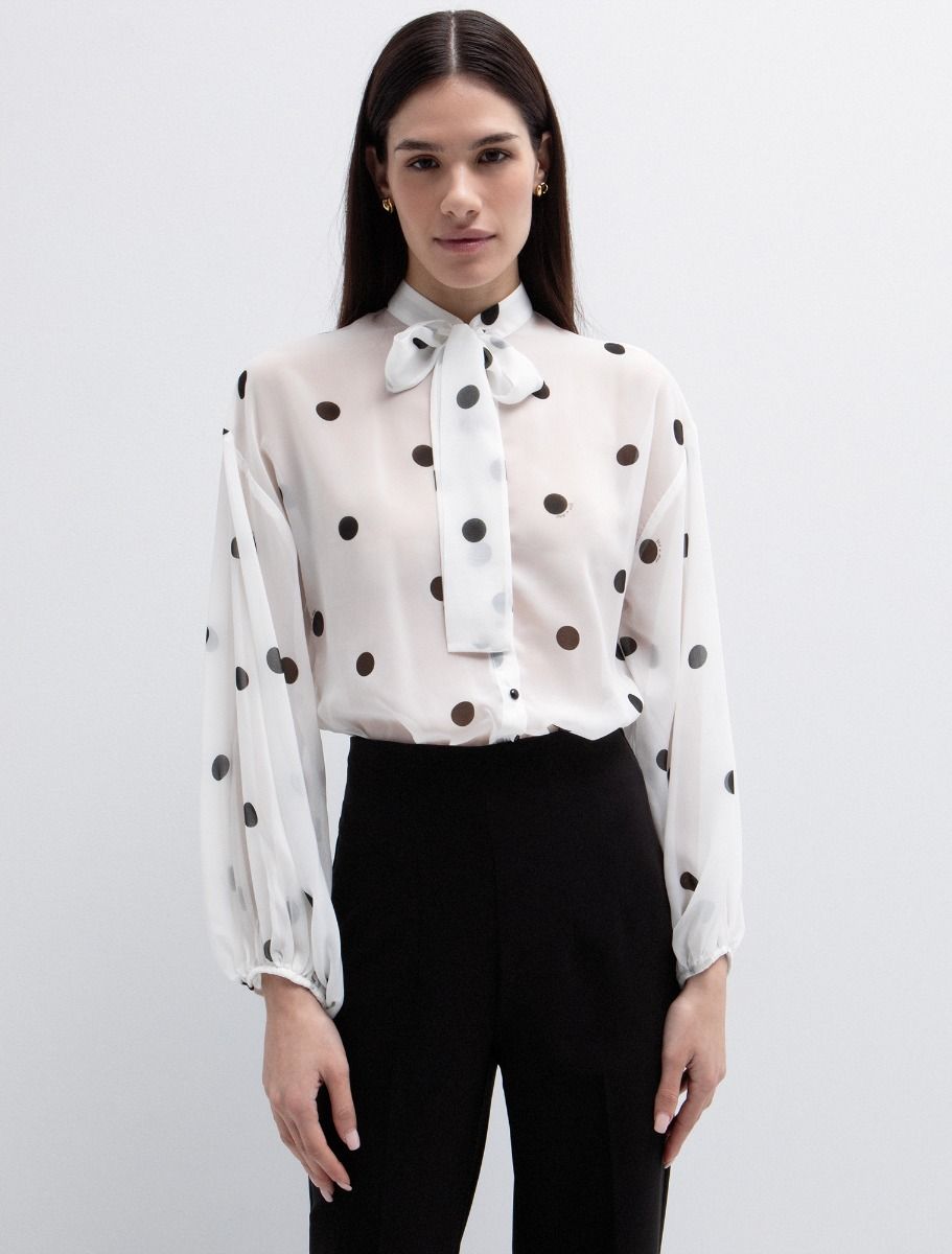 Πουά μπλούζα με κορδέλα