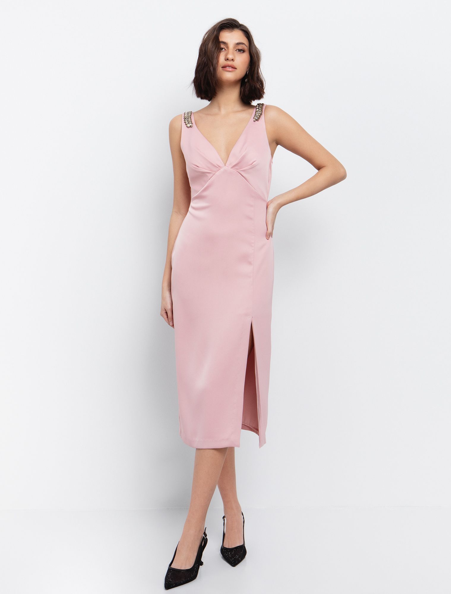 Midi φόρεμα με απλικέ κόσμημα
