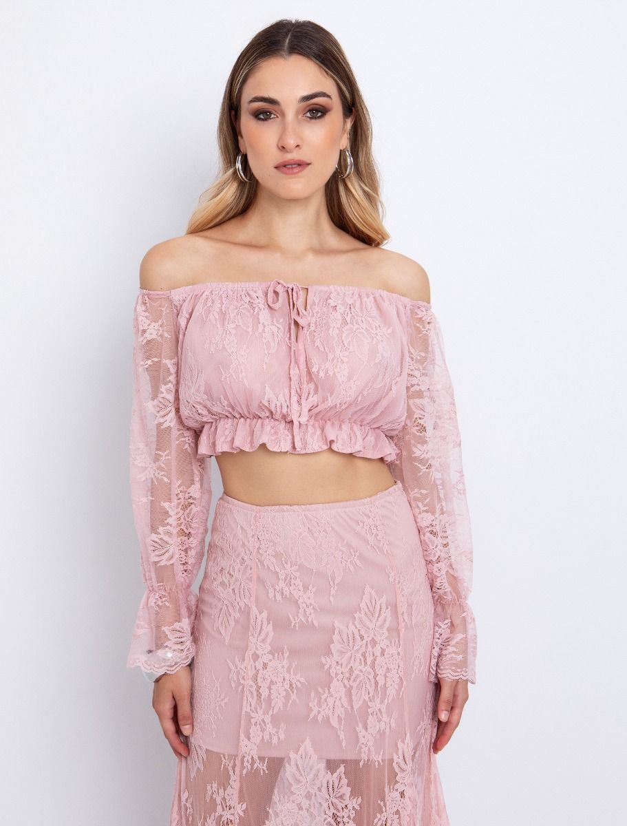 Off shoulder δαντέλα τοπ