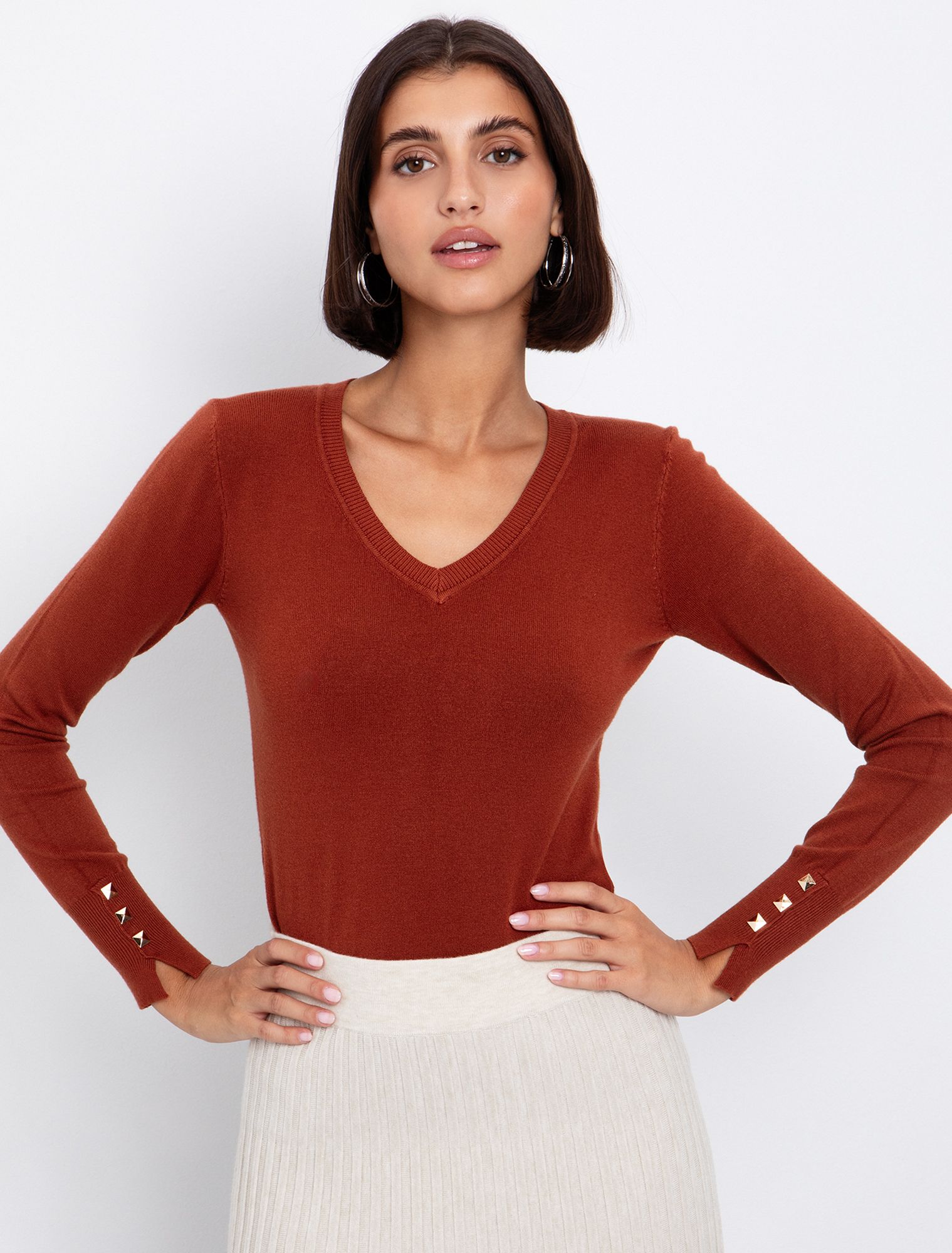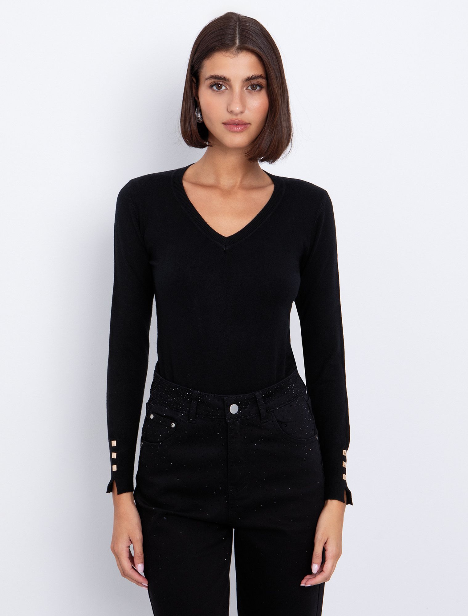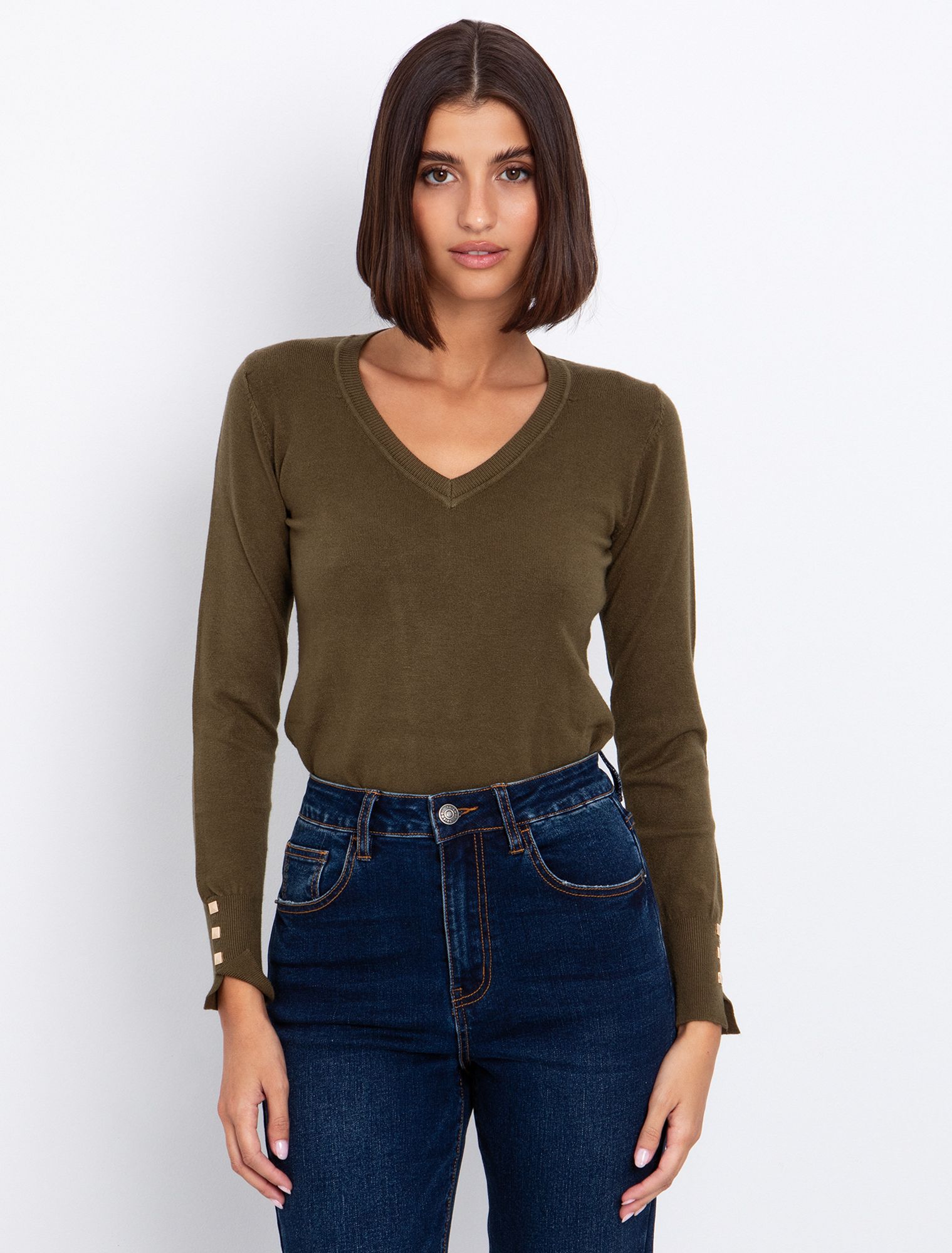 Basic πλεκτή μπλούζα V-λαιμόκοψη