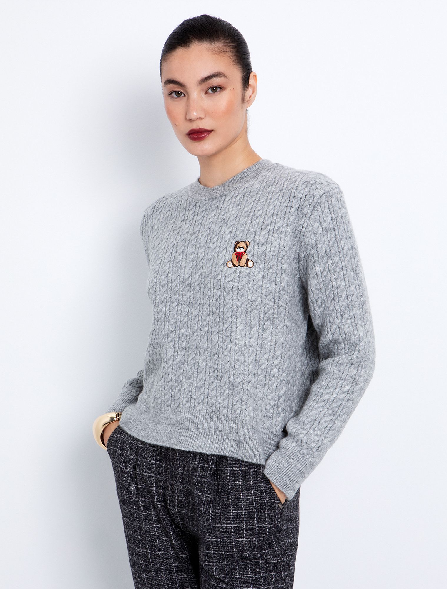 Πλεκτή μπλούζα με teddy σχέδιο
