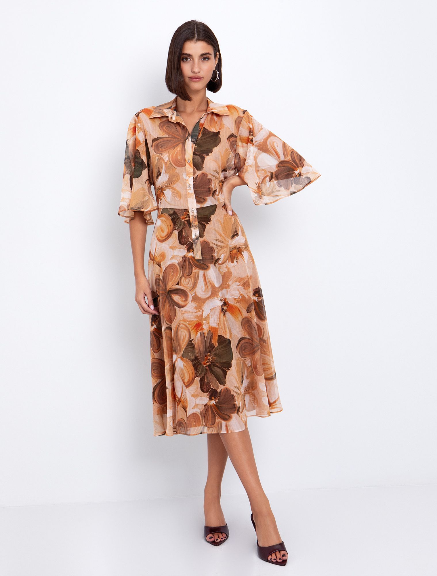 Σεμιζιέ φόρεμα με τύπωμα φύλλα