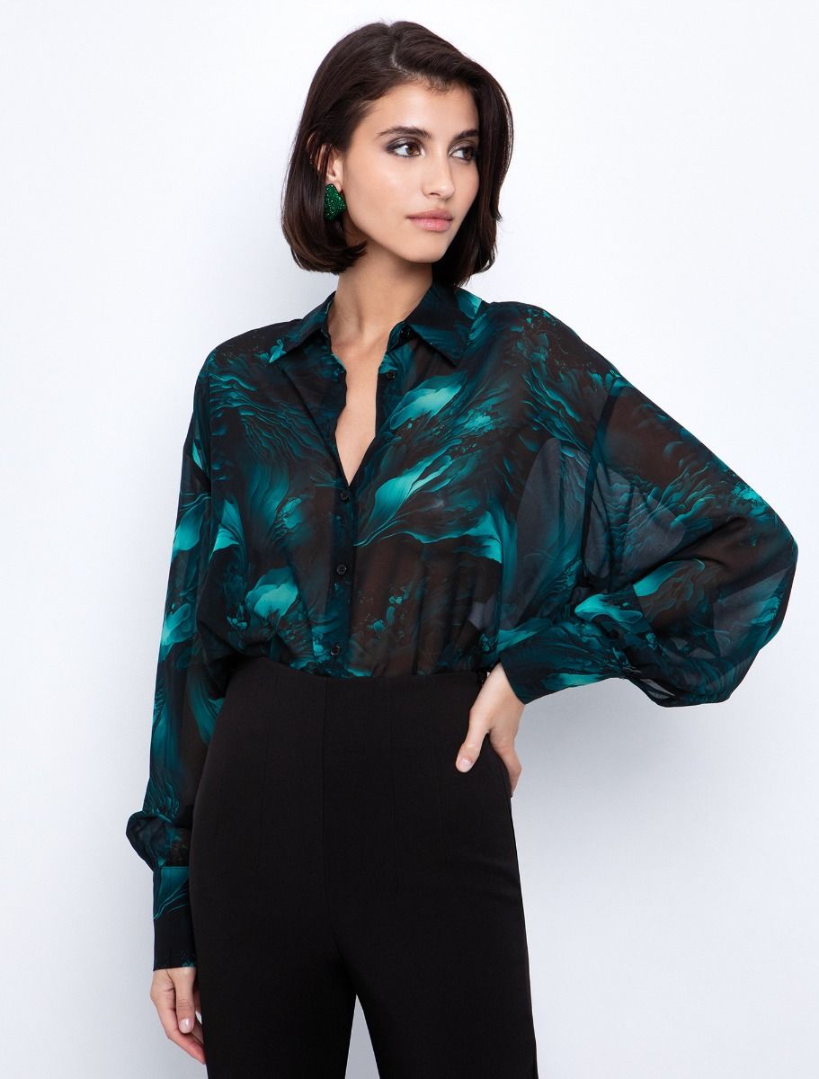 Eμπριμέ πουκαμίσα με κορδέλα