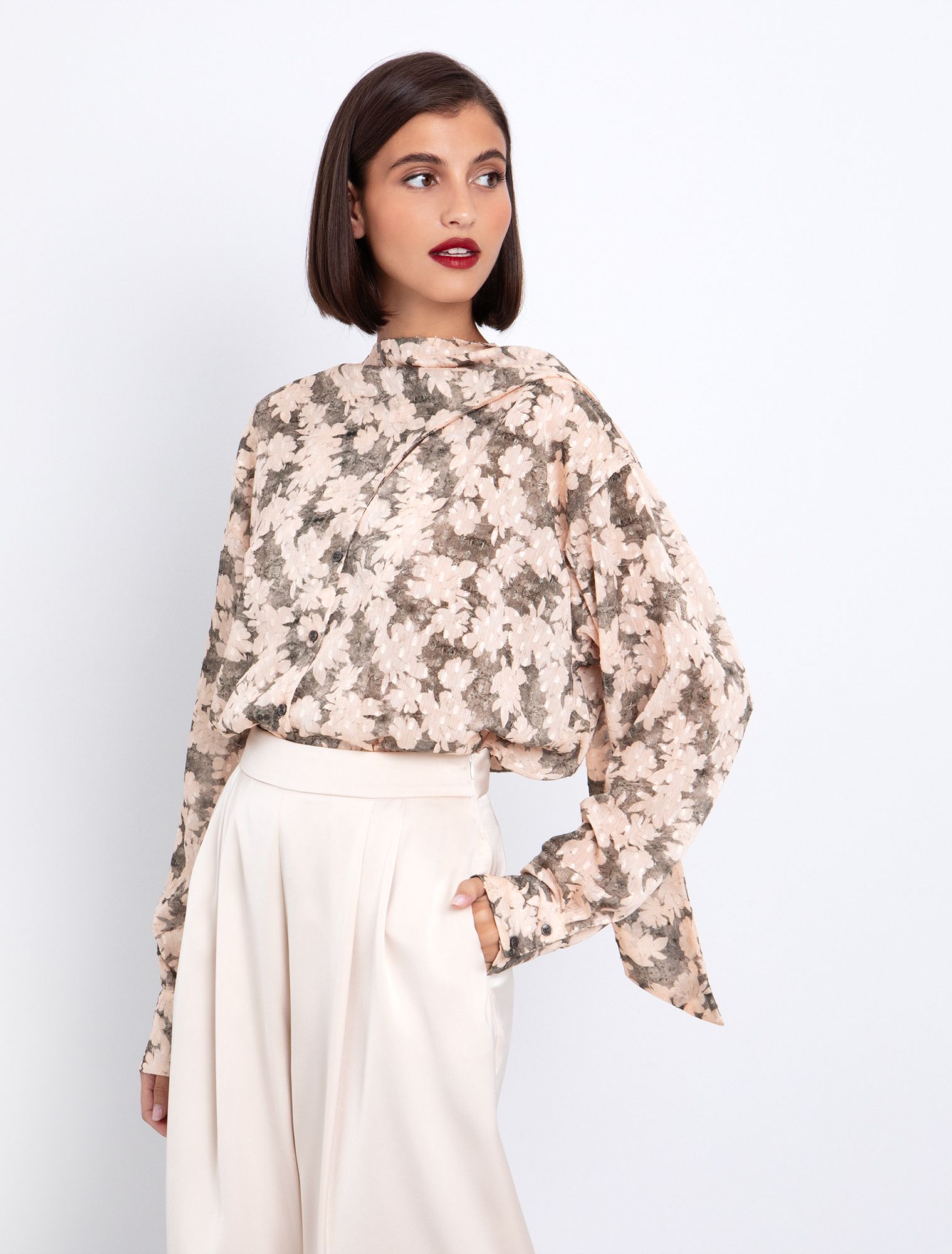 Floral πουκαμίσα με δέσιμο στο λαιμό