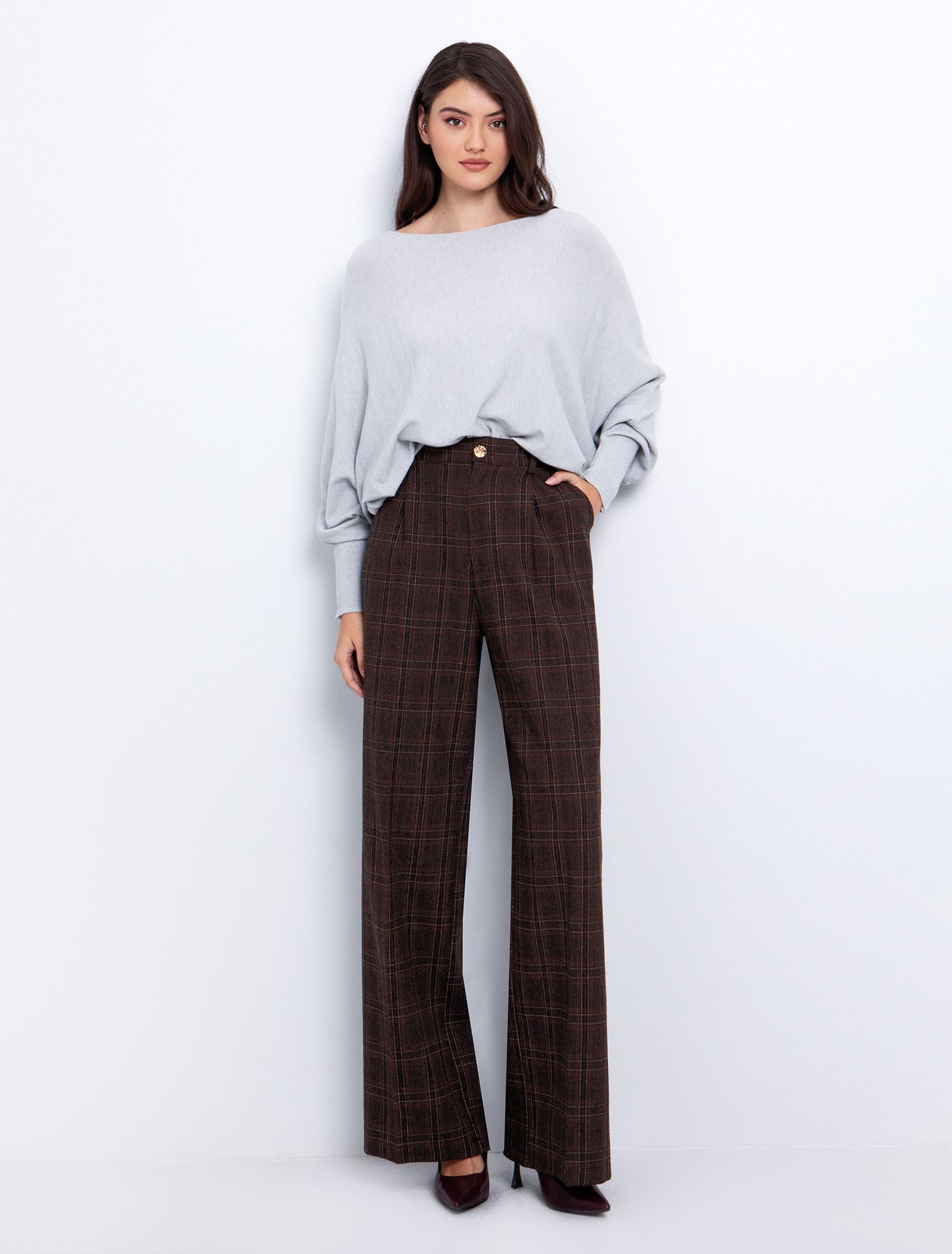 Καρό παντελόνι με μείγμα από μαλλί