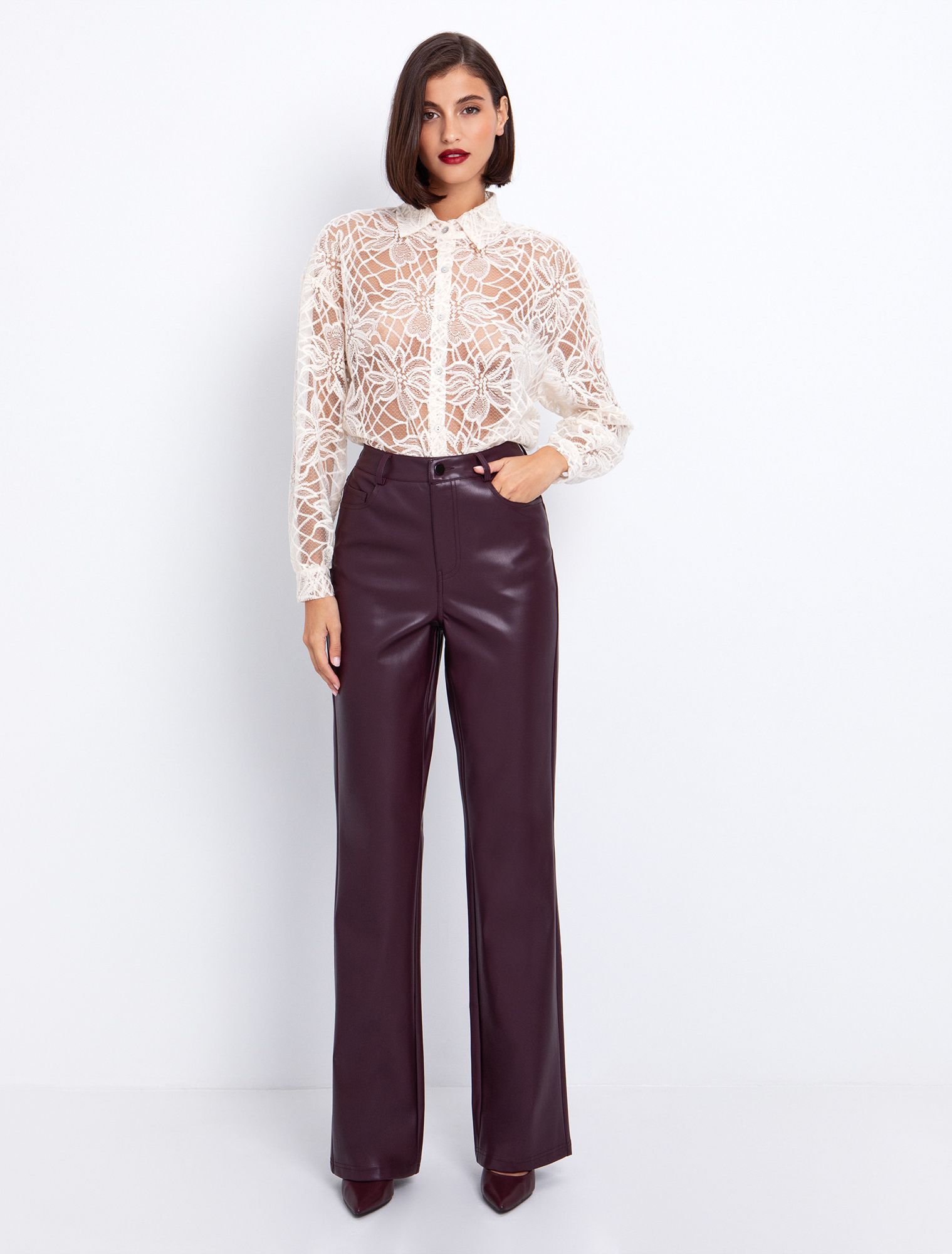 Flared παντελόνι σε όψη δέρματος