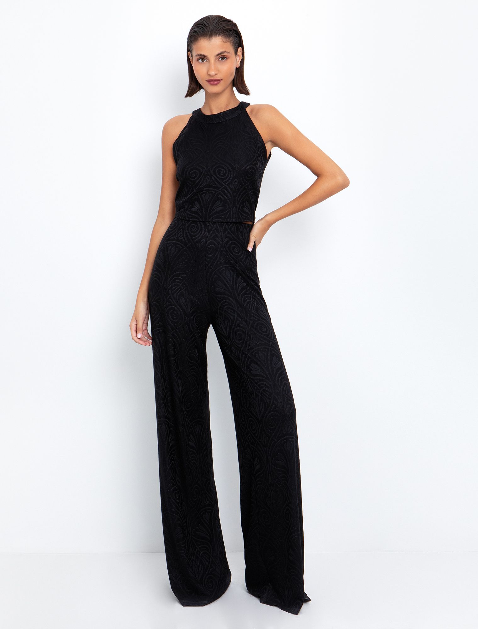 Wide leg ολόσωμη φόρμα πλισέ