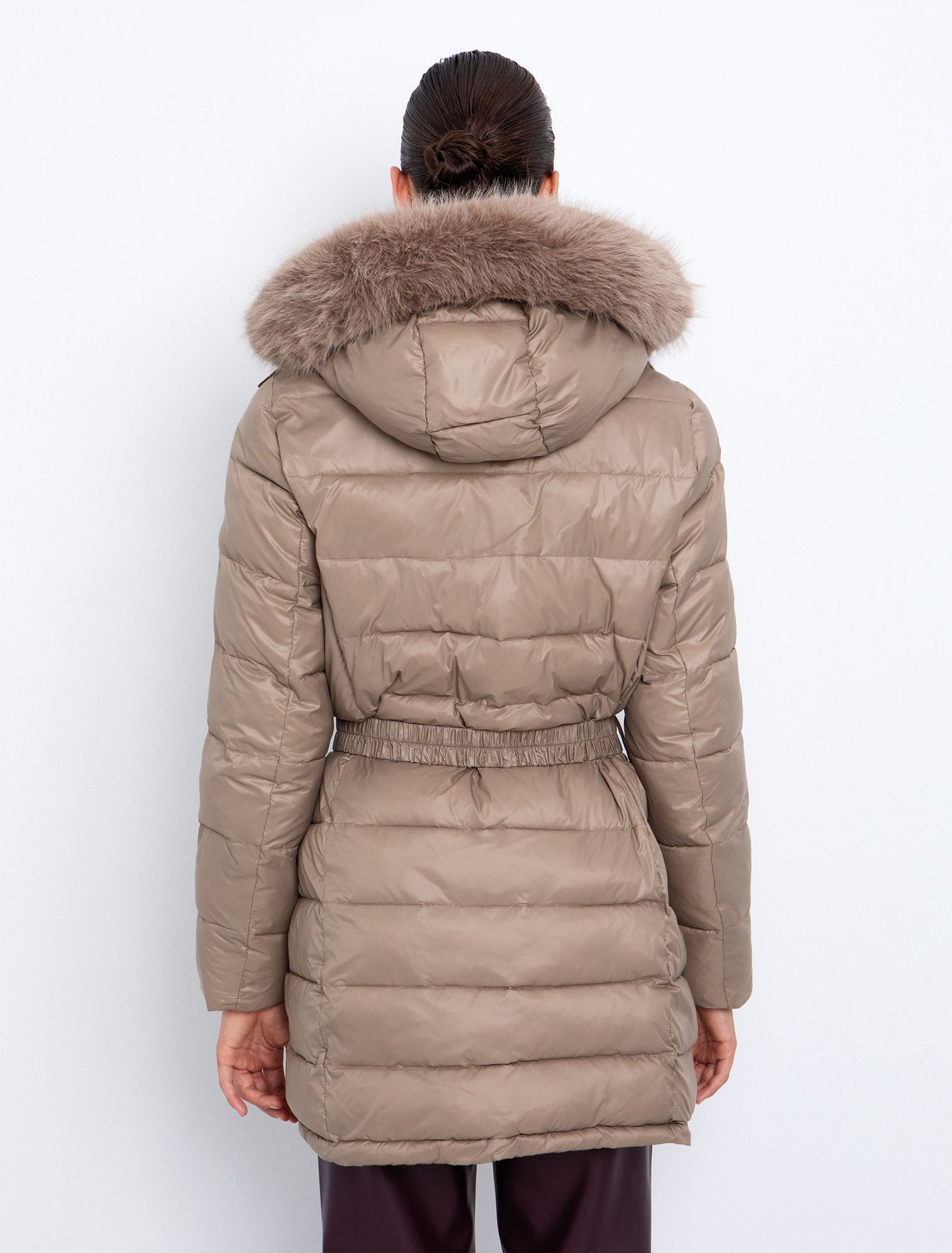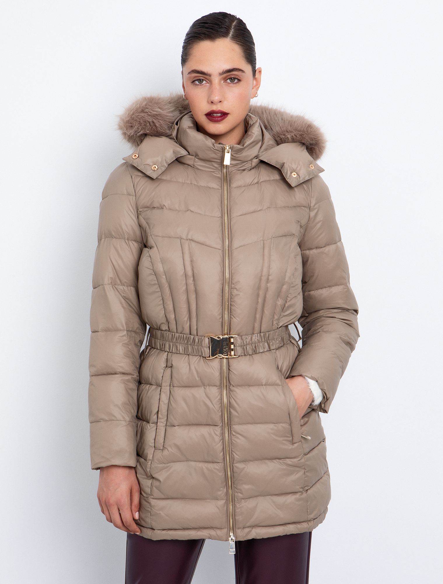 Καπιτονέ μπουφάν με κουκούλα & ζώνη