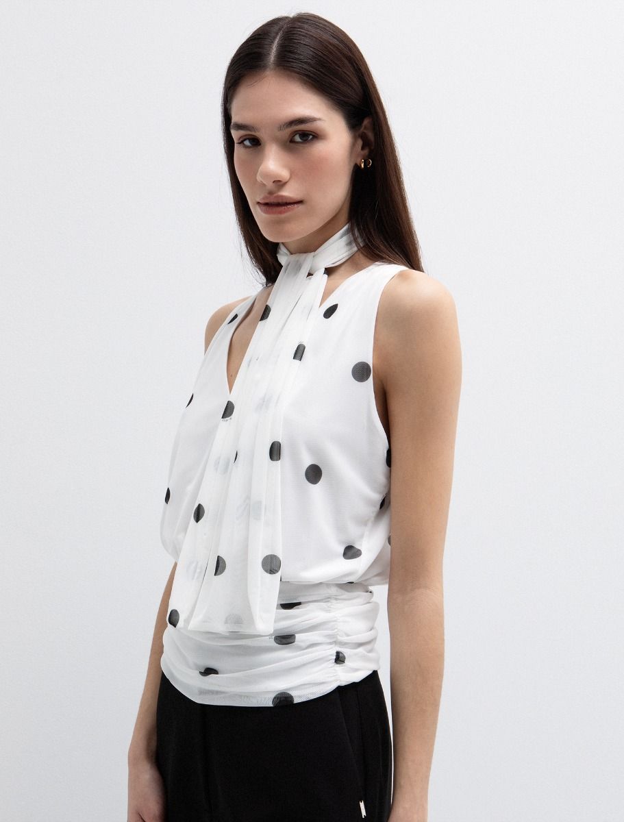 Πουά μπλούζα με κορδέλα