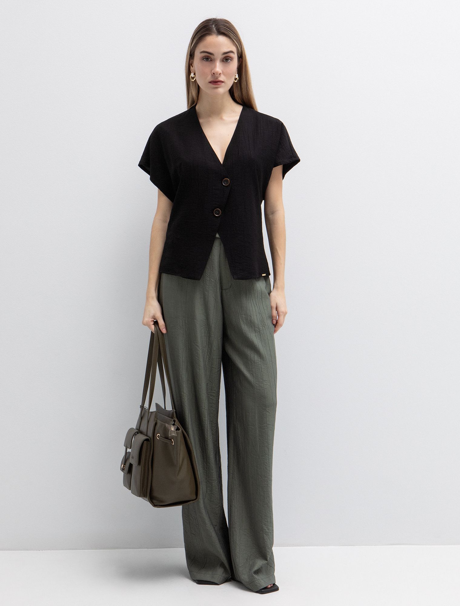 Ασύμμετρη μπλούζα με κουμπιά