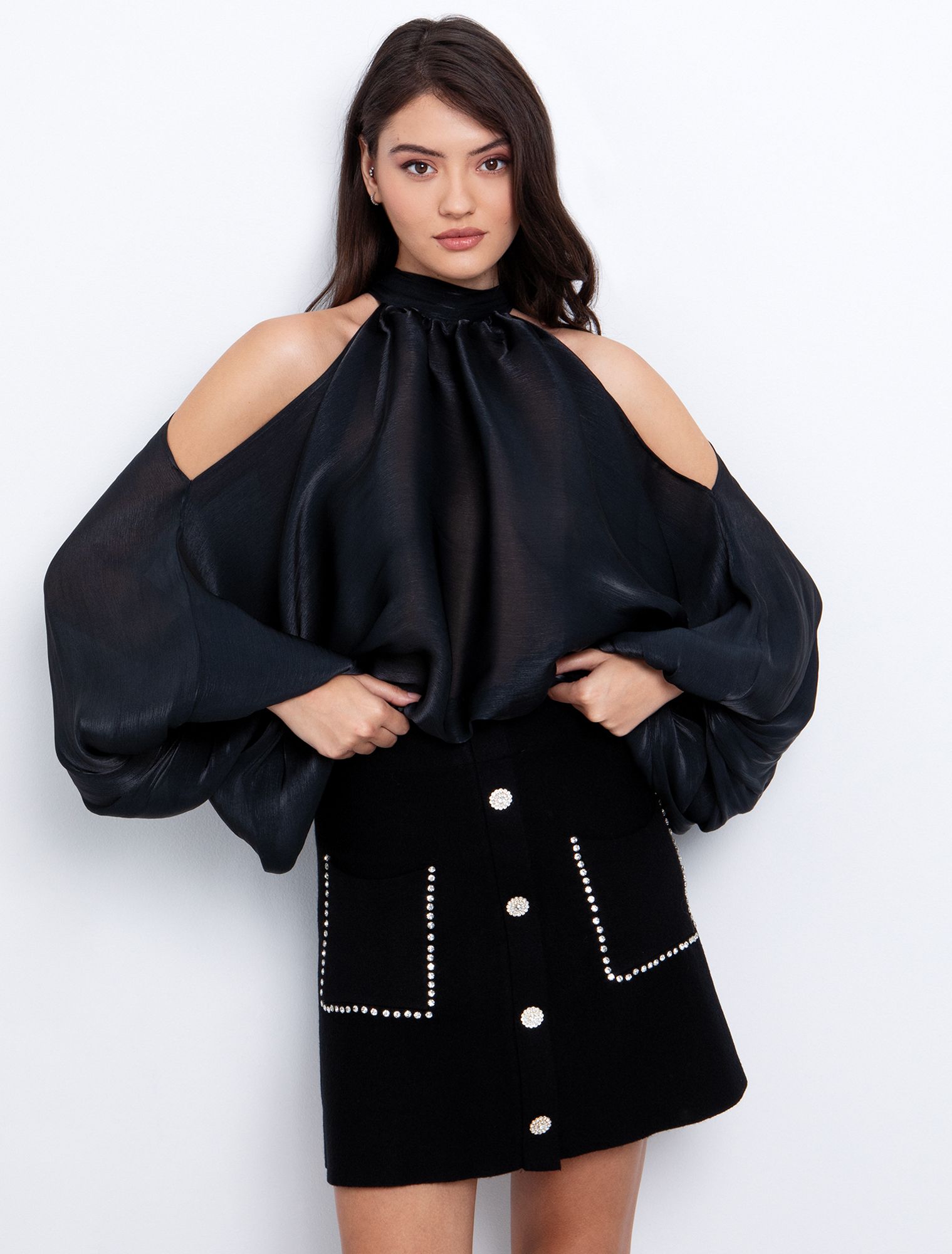 Halter τοπ με cut out μανίκια