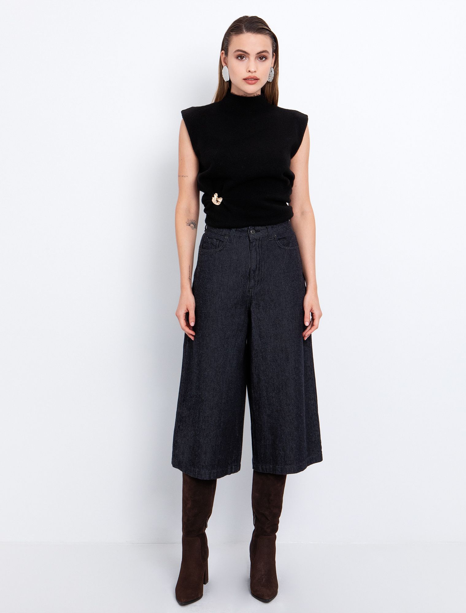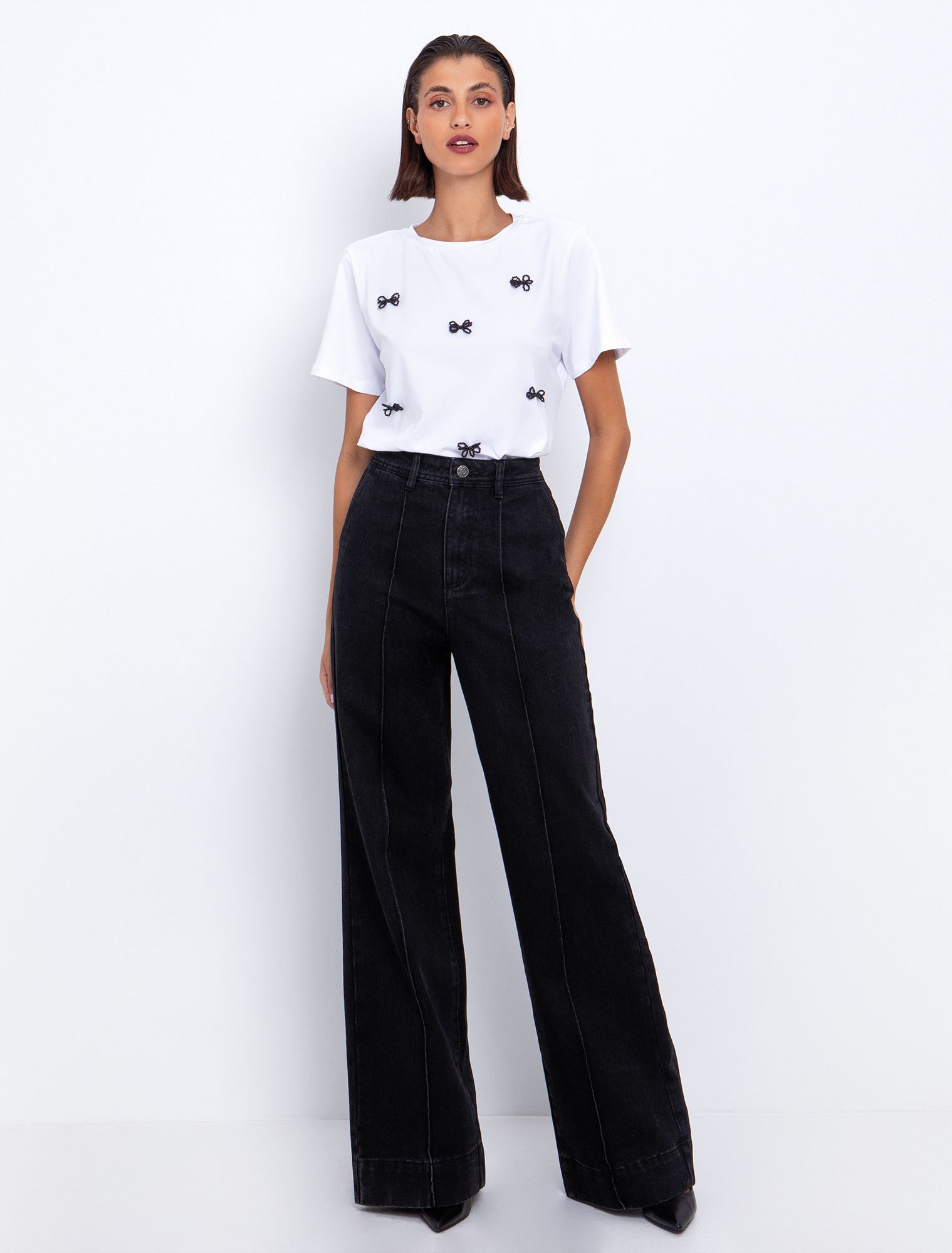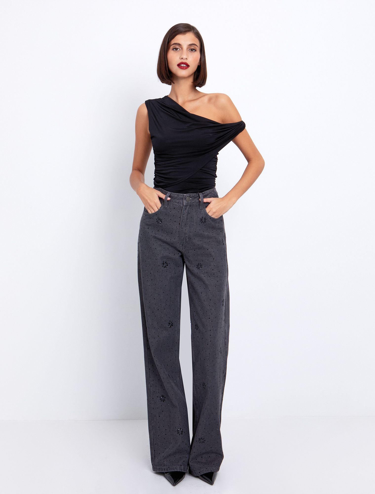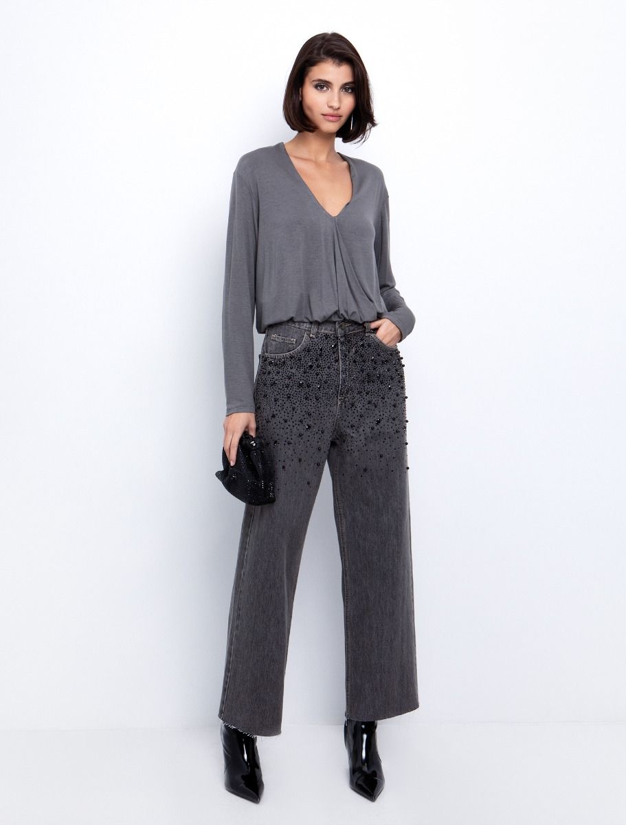 Wide leg τζιν με μαύρες πέτρες