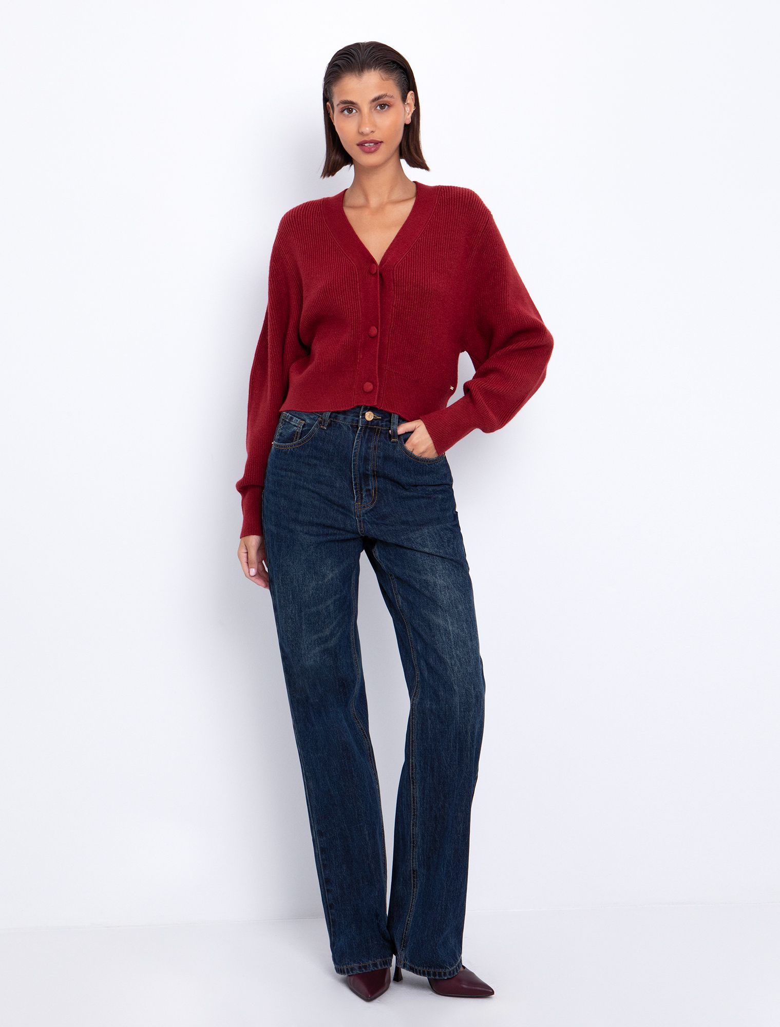Wide leg jean με θηλιές-κουμπιά