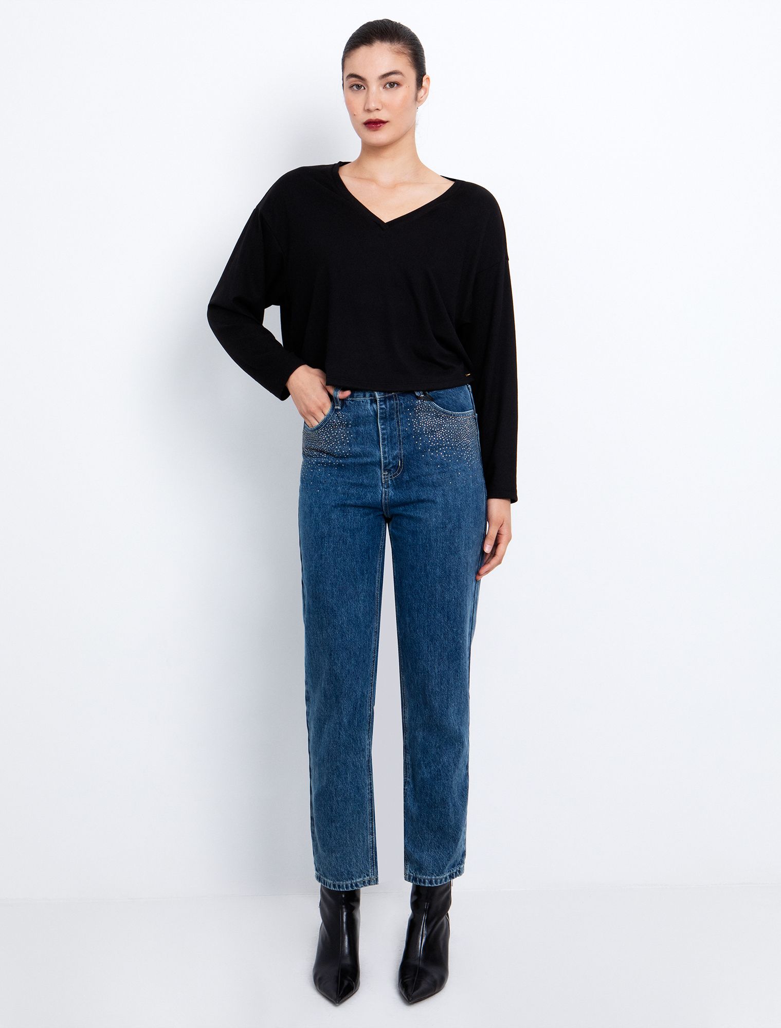 Mom fit jean με κρύσταλλα