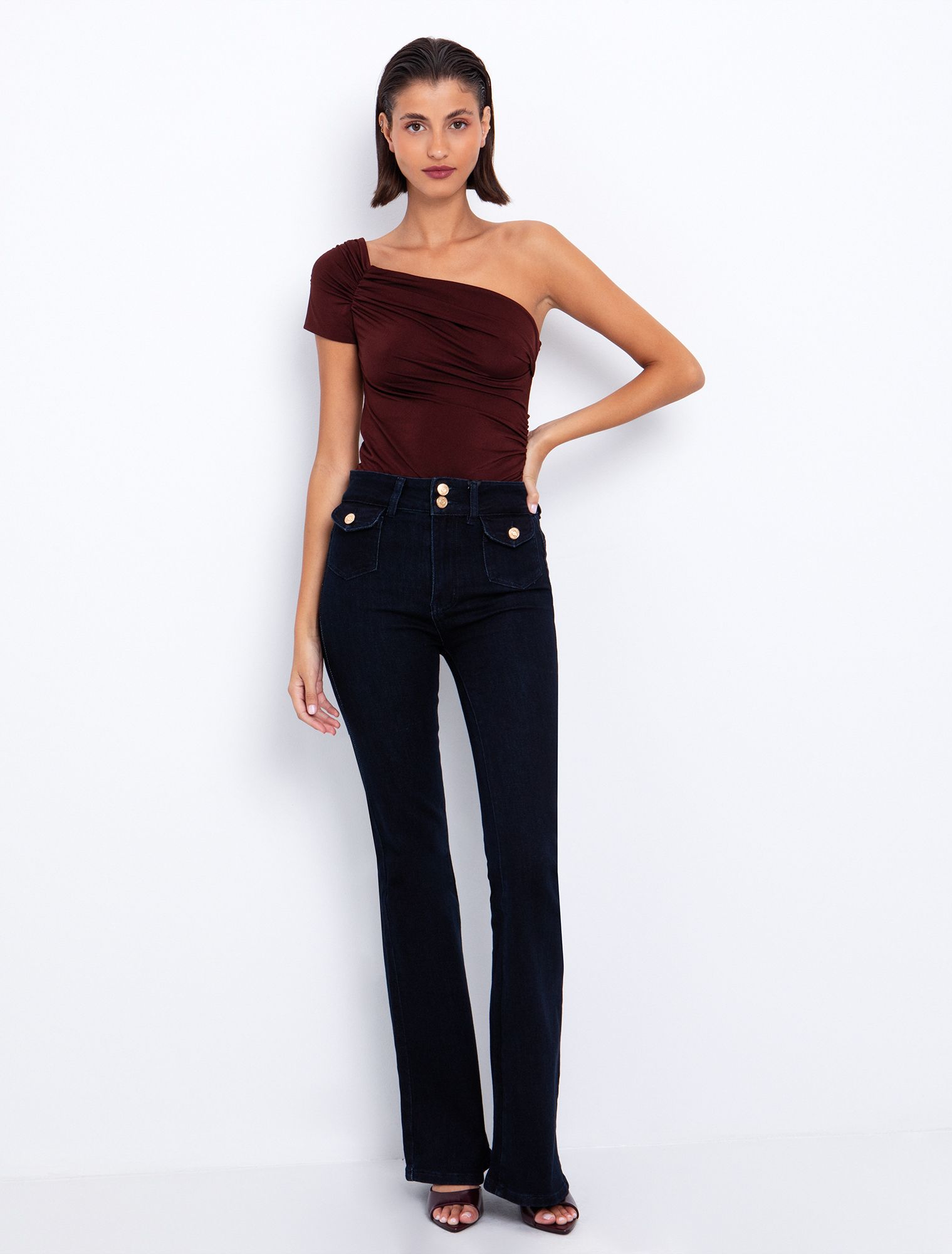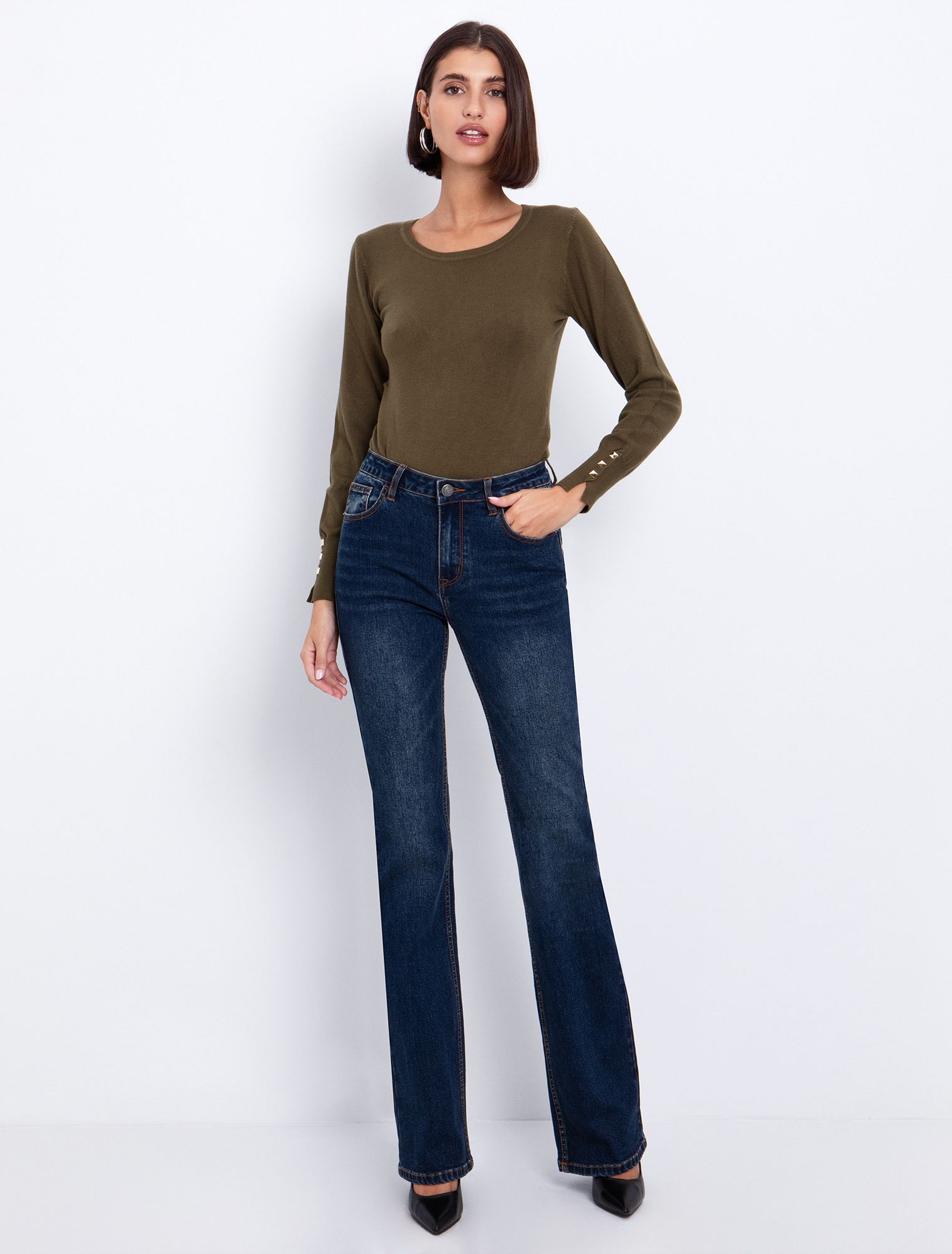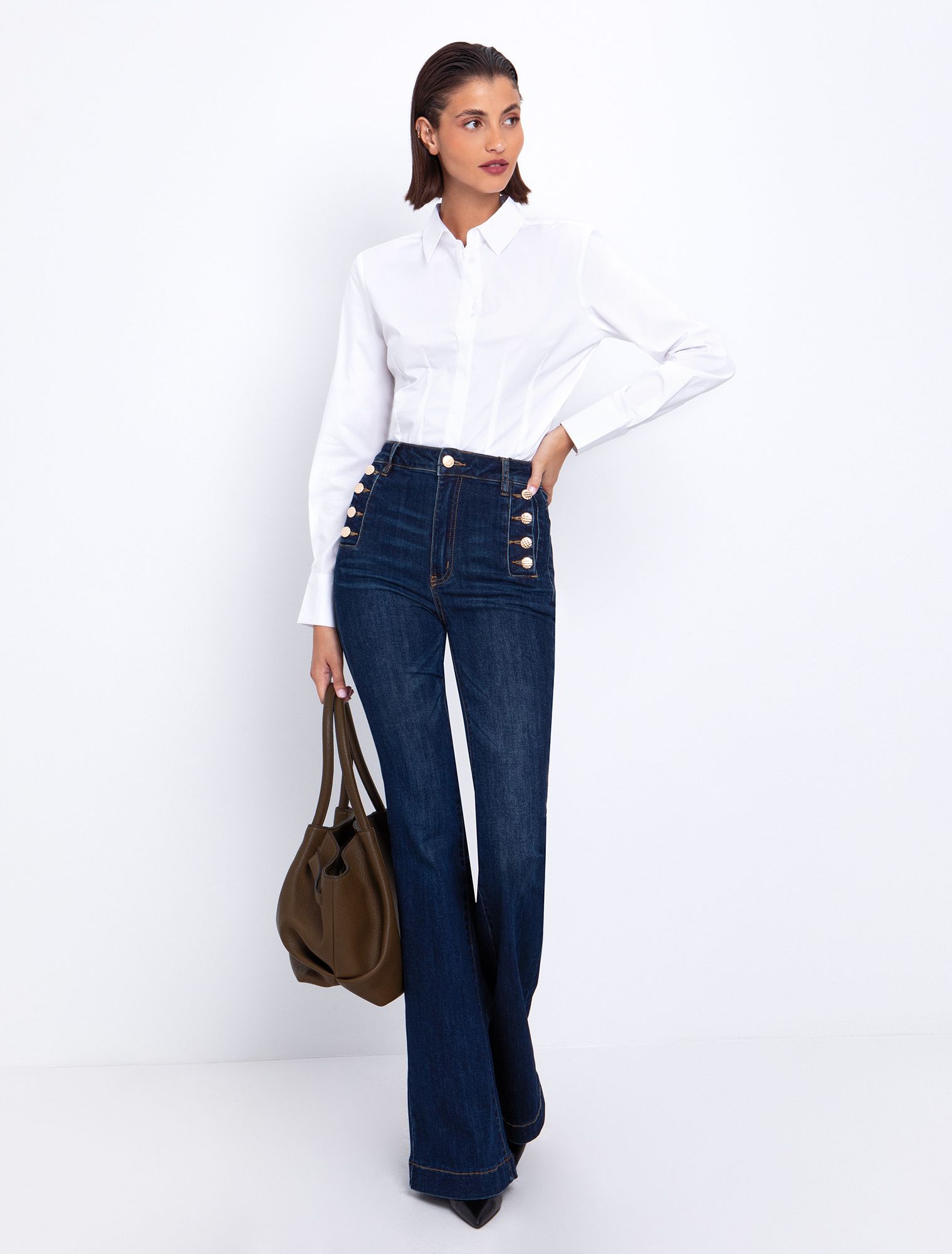 Flare τζιν με gold κουμπιά